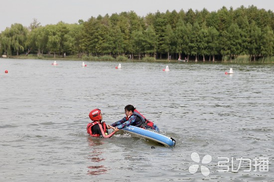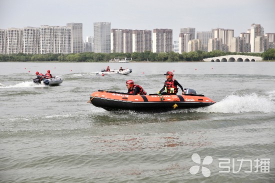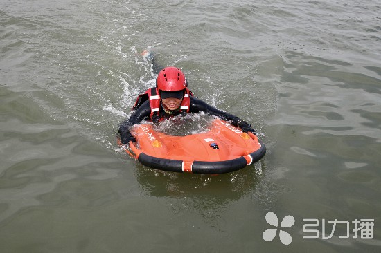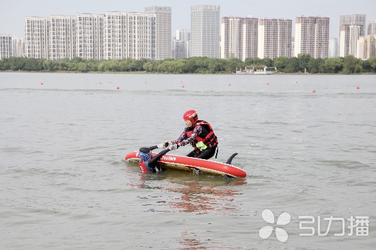 演练还特别展示了桨板救援技术——1名落水者游至距岸边约30米水中,1名队员携带桨板快速下水并划向落水者,以二次翻板技术,将落水者置于桨板上,快速划回岸边。“桨板,起源于美国夏威夷冲浪运动。救援桨板是在冲浪板和海浪救生板的基础上改进而来的水上救援器材,一般采用橡胶材料制作,充气后可成型为一块救生板,放气后可以折叠成一个包,近年来被逐渐应用于水域救援中。”马明表示,桨板浮力大、携带方便,靠救援人员采用跪姿、站姿和卧姿划水等方式提供动力,对于城区内涝、水上赛事安全保障、近海岸快速响应救援等方面有不可取代的优势。