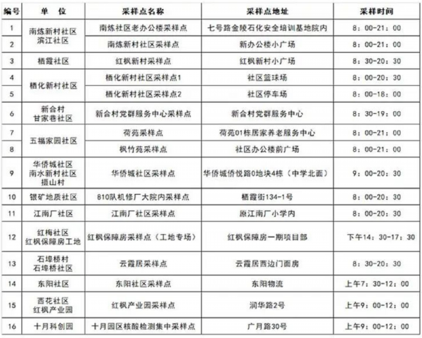 1、请各位居民主动配合,按照相关街道统一安排,分时段有序前往指定采样点进行核酸采样;行动不便人群由所在社区安排采样人员上门采样。