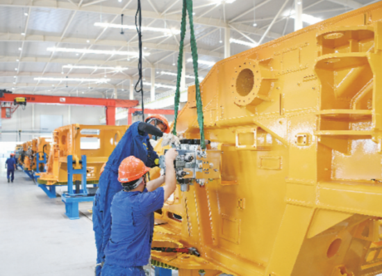 “项目‘拿地即开工’,一年内即实现了部分投产。”徐工起重机械事业部、徐州重型机械有限公司副总经理史先信表示,徐州重型高端起重装备智能工厂总投资15亿元,着力攻克极限复杂工况下高难度、高精度的吊装作业难题,突破研发、制造环节的卡脖子技术,助力我国工程起重装备挺进国际中高端市场,满产后年产各型起重机械2000台、年产值超70亿元,将为经开区做强工程机械“一号产业”、打造世界级地标性产业注入新的强劲动能。