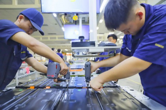 有序挥舞的机器人手臂,一字排开的液晶大屏,全神贯注的技术“蓝领”……国庆假期,开沃大道上的维能动力电池PACK组件项目车间里,人、机协作,生产繁忙,一块块可续航600公里的新能源汽车电池包正密集下线。