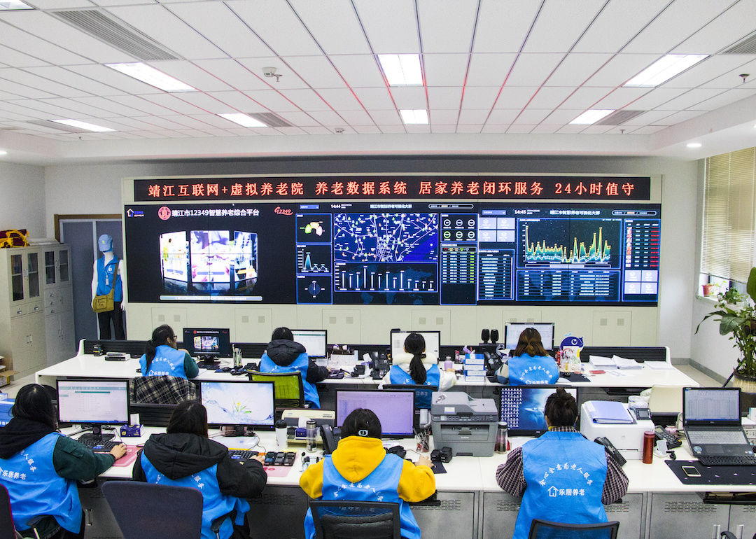 “欢迎拨打12349为老服务热线。”“好的,我来联系附近的助老员,请稍等。”……江苏省靖江市智慧养老服务平台内,工作人员正忙着联系调度,电子屏数据不断跳动更新着,代表着活跃在城乡各处的助老员正在服务中。