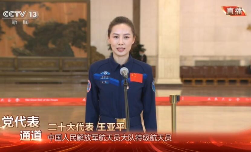 二十大代表、中国人民解放军航天员大队特级航天员 王亚平:现在我的三位战友正在浩瀚的太空出差。每次在太空听闻党和国家的大事喜事,对我们来说都是最强的精神激励。