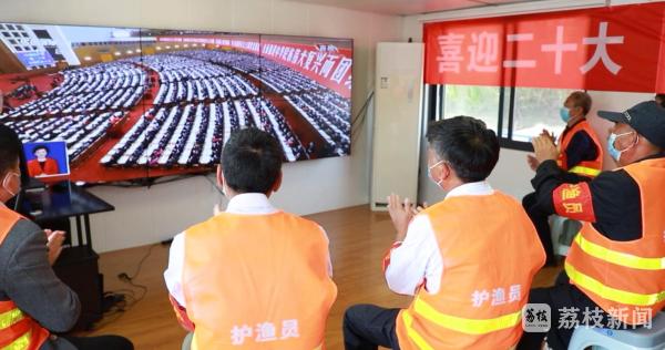 在镇江扬中长江禁捕执法基地,几位护渔员们早早完成今天的江堤巡查任务,约好了一起在执法基地会议室收看党的二十大开幕会直播盛况。今年59岁的徐纪龙告诉记者,自己是扬中首批退捕渔民,从昔日打渔为生,到响应长江大保护号召主动上岸,再到全身心投入全市护渔行动,这十年的变化太大了,他和伙伴们一起,亲眼见证了长江生态环境的变化,“总书记在报告中提到,生态环境保护发生历史性、转折性、全局性变化,我们的祖国天更蓝、山更绿、水更清。现在巡江时经常能见到江豚翻腾,夹江里的鱼类也逐渐多了起来,今后我们还要继续为保护长江贡献力量。”