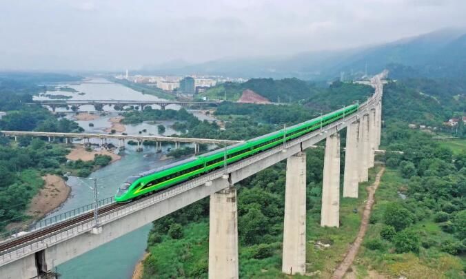 CR200J型动车组在金台铁路仙居县永安溪大桥上行驶。