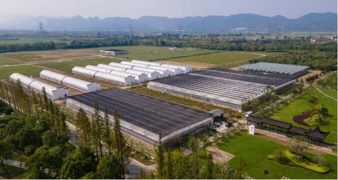 滕头农业示范园区航拍。园区主要种植草莓、百合花等经济作物。
