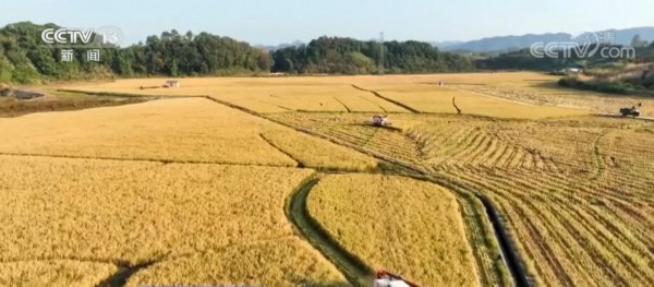 央视网消息:秋高气爽,全国多地应季的粮食和经济作物都进入了采收的高峰,田间涌动的金色波浪、忙碌的身影、轰鸣的农机汇成一片丰收美景。