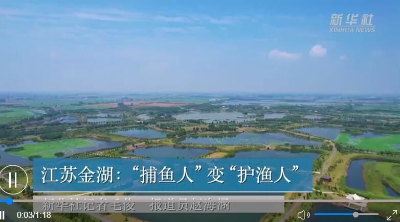 江苏金湖县响应国家河湖生态治理和长江流域禁捕退捕号召,在金湖县白马湖东南岸实施退养还湖和退捕上岸工程,近年来改善了360户渔民居住条件。如今,白马湖岸边,渔民摇身一变成为了“护渔人”,保护渔业资源,用心守护一方生态。