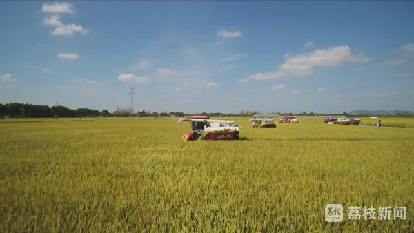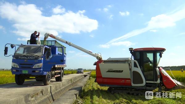 记者在常州溧阳市南渡镇庆丰村万亩丰产方内看到,广袤的田野上,数台收割机开足马力往返穿梭,所到之处,水稻尽数倒下,而在田头,运输车及时将收割的稻谷装车。10月25日一大早,种田大户王林松就安排人员驾驶着运粮车,将刚收割上来的稻谷运往了仓库。