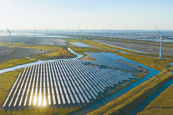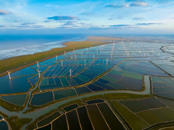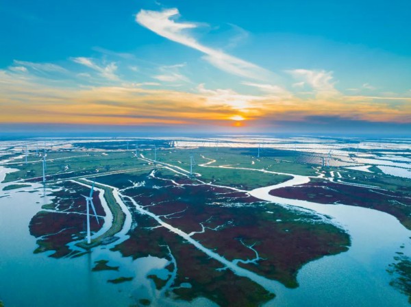 为践行“双碳”目标,江苏省盐城市积极把资源优势转化为产业优势,在沿海滩涂大力发展以太阳能、风能等为主的新能源,积极打造绿色能源之城。