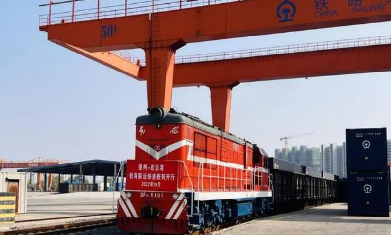 这是徐州—连云港铁海联运开行的首列点到点直达快速班列,全程运输时长约8小时,比散发运输节省了2/3以上的编组站等待时间。该趟满载徐州市企业生产的工程机械配件、工业轮胎等产品的铁海联运班列在到达港口后,将集中上船经海运发往日本、印度尼西亚等国家,实现商品要素资源在更大范围内的畅通流动。