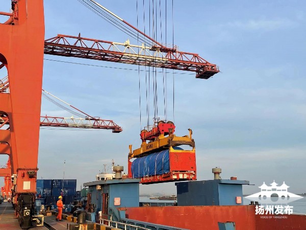 扬州港进境机电设备卸船现场 柳宇龙/摄