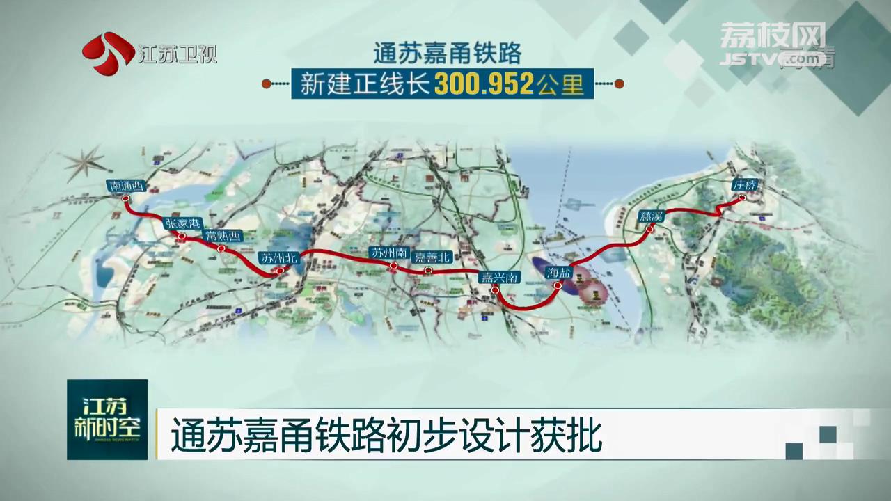 通苏嘉甬铁路初步设计日前获国铁集团、江苏省人民政府、浙江省人民政府联合批复,为年内开工建设奠定了坚实基础。通苏嘉甬铁路位于江苏省和浙江省境内,为南北向铁路。线路北起南通市南通西站,与盐通铁路正线贯通,向南跨过长江后,经过苏州市、嘉兴市后跨过杭州湾进入宁波市。新建正线长300.952公里,全线设南通西、张家港、常熟西、苏州北、苏州南等10座车站。通苏嘉甬铁路是国家高速铁路网“八纵八横”主骨架之沿海铁路客运通道的重要组成部分,是长三角城际铁路网的骨干线路,也是架构苏州“丰”字形国家干线铁路网的南北主动脉,建成后将有力消除区域城际交通南北纵向供给体系短板,实现长三角南北两翼客运快速化。
