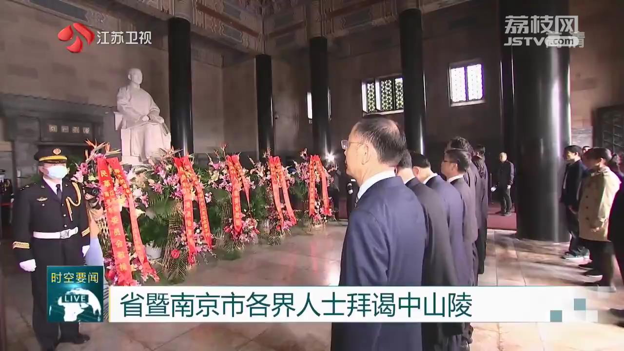 上午9时,参加拜谒的各界人士拾级登上陵顶祭堂,在中山先生坐像前庄严肃立,行鞠躬礼。在民革江苏省委负责同志主持下,省、市人大常委会,省、市政府,省、市政协,中共江苏省委统战部、南京市委统战部,民革江苏省委、民革南京市委有关领导,分别向中山先生坐像敬献花篮。接着,各界人士绕灵寝一周,深切缅怀中山先生的不朽业绩,期盼祖国完全统一和中华民族伟大复兴。