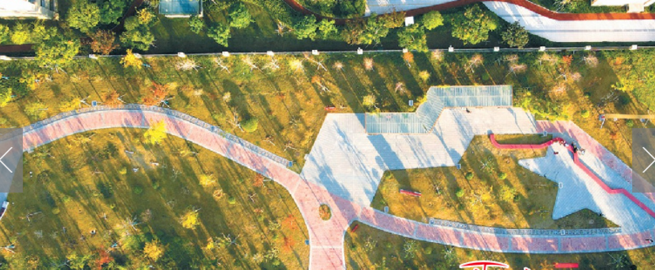 第一次的幸福感来自于去年底竣工的老龙潭口袋公园一期,位于小区西墙外,南北长270米、东西宽34米,向南和房亭河北岸相连,投资350余万元,占地面积9600㎡,铺设广场园路2060㎡,安装党建雕塑1处、红飘带1处。
