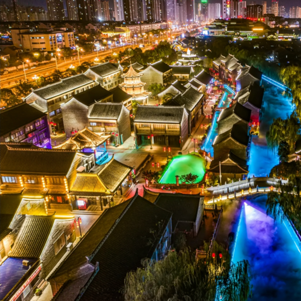 实施集聚区主街标识系统布点、节点广场更新提升,打造西游主题亮化和水舞灯光秀;吴承恩故居文化广场精心设置夜间卡通形象和西游记故事群雕;河下古镇入口设置瑶池仙境景观,打造了有内涵的夜间旅游目的地。