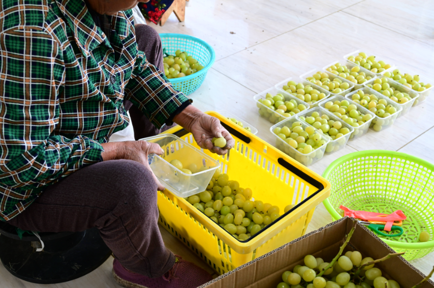 同时,合作社还立足乡村振兴发展,积极向周边种植户普及新品种、新技术,帮助其他种植户解决在生产经营过程中遇到的各种技术难题,实现了葡萄种植户抱团发展、组团闯市场,在疫情影响、市场疲软的背景下,实现销售的逆势增长。