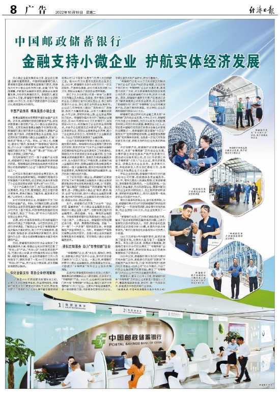 中小微企业是发展的生力军、就业的主渠道、创新的重要源泉。中国邮政储蓄银行深入贯彻落实国家决策部署和监管部门要求,持续加大对中小微企业的支持力度,金融“活水”稳流增量,不断提升金融服务质效,赋能企业高质量发展,为经济发展增添活力。数据显示,截至2022年6月底,邮储银行普惠型小微企业贷款余额1.09万亿元,在客户贷款总额中占比超过15%,稳居国有大行前列。