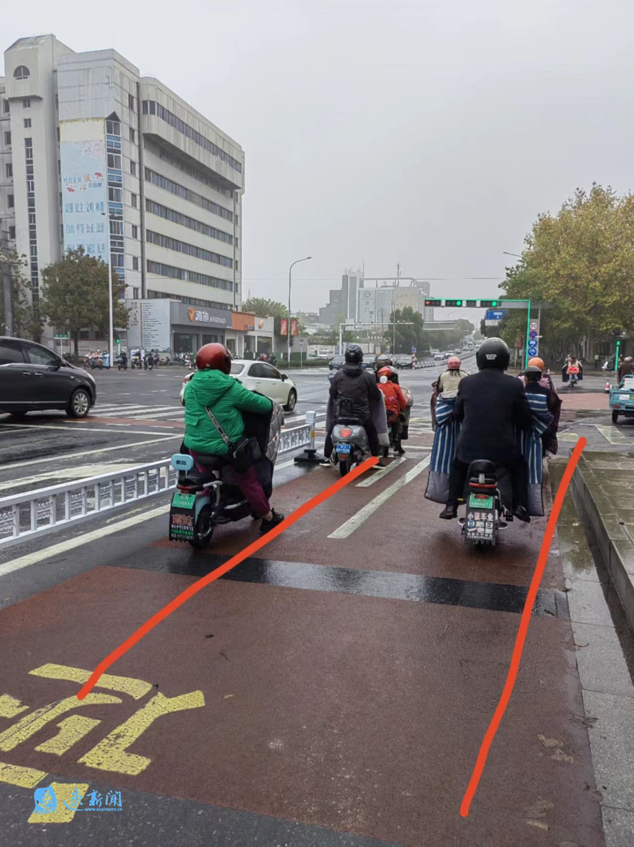 宿迁市公安局交警支队秩序管理大队秩序中队指导员沈亦楠介绍,近年来,宿迁创新实施了一系列交通管理措施,解决了一个又一个交通管理难题,例如创新实施“开车门”警示区,消除“开门杀”交通事故隐患;实施“月牙式”右转红色危险区,消除货车右转“包饺子”事故;施划“阶梯式”停止线,消除“鬼探头”过街安全隐患,以及在路口创新实施非机动车调头车道、“喇叭式”非机动车路口通道、红绿灯“辅助灯带”、可变车道等等,以此来确保群众出行安全。
