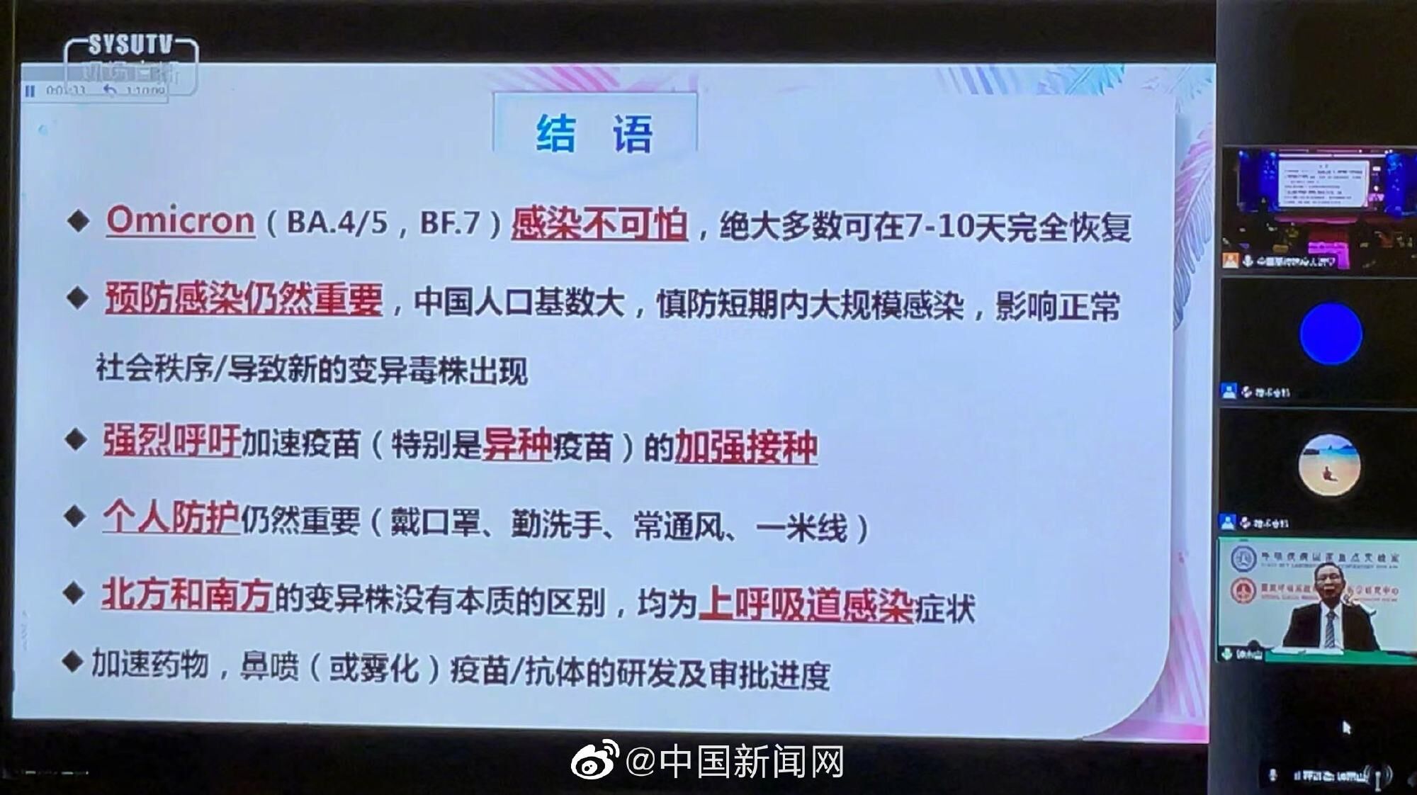12月15日下午,钟南山院士在全国高校抗疫大讲堂讲座中提到,现在有种说法“早也阳、晚也阳、不如大家一起阳”,这种观念不可取。因为很短时间内大面积感染,会影响正常社会秩序,而且容易导致新的变异株出现。钟南山强烈呼吁加速疫苗(特别是异种疫苗)的加强接种。同时,他还强调,个人防护仍然重要,戴口罩、勤洗手、常通风、一米线。