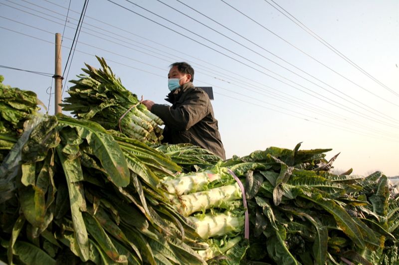 12月16日,记者走进泗阳县城厢街道五堆社区蔬菜基地,连片的蔬菜大棚蔚为壮观,棚内的莴苣长势喜人。村民们正在采摘、打包、过秤、装车,呈现一派忙碌景象。这些莴苣将发往宿迁及淮安、扬州等市场。