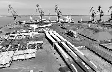 中复连众负责人乔光辉介绍,每年仅中复连众就有2500件叶片、1000件管罐产品通过该通道运抵港口,可以帮助企业新增年产值25亿元。