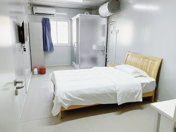 医院共分为四个区域,3个区域设有病床,均为单人间,1个区域为办公区并配有办公宿舍。每个床位除了必备的病床外,还配有一个床头柜、一个收纳箱以及多个插座,同时床头统一设置了一键报警求救装置,可随时进行求助。此外,病房区域内还设有洗漱区、淋浴间、开水间、卫生间等,同时提供无线网络,保障患者基本日常生活。