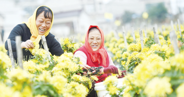 寒冬时节,金南镇南望村菊花基地百亩金丝皇菊进入收获期。“春上栽,秋冬摘,一年四季都有活干,一天有时候能挣百十块钱。”村民叶鹤娟说。金南镇南望村抓住金湖获批首批国家全域旅游示范区创建单位契机,引进优质金丝皇菊种植,眼下,菊花田不仅成为乡村旅游的一道美丽风景,更成为带动当地百姓致富的重要战场。