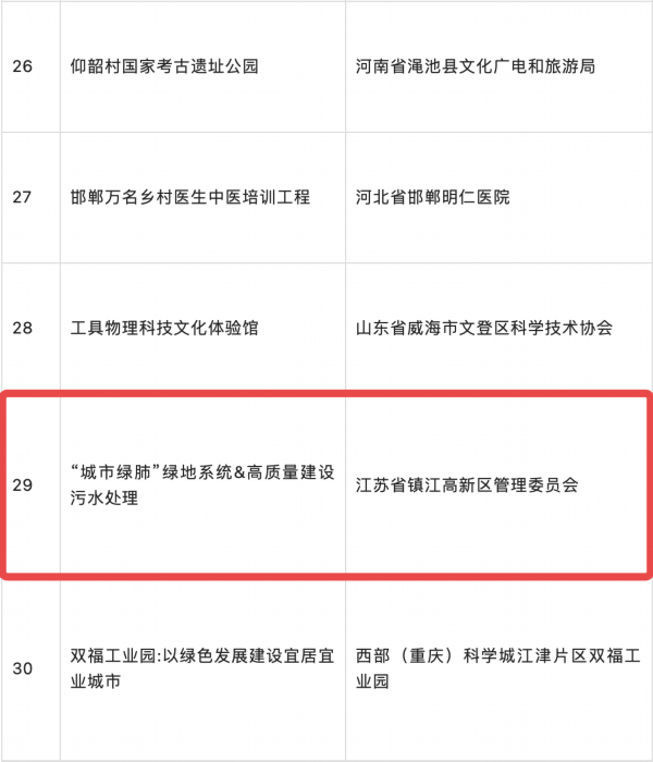 镇江高新区“‘城市绿肺’绿地系统&高质量建设污水处理”入选全国“2022民生示范工程”案例。