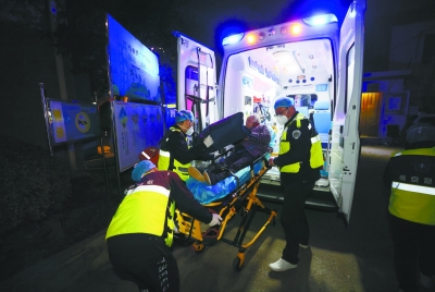 昨晚,南京市急救中心工作人员在抢救患者。连日来,南京市急救中心120急救电话每天呼入量近6000个,出车量超1000次,近一周出车辆超8000次,超过日常工作量的两倍。记者 徐琦 摄