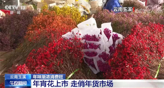 在年货市场,作为年宵花主打品种的澳洲蜡梅和洋桔梗迎来销售旺季。在云南玉溪江川的这家花卉公司,一大早,工人们就已经在包装车间争分夺秒地对鲜花进行分拣、称重、包装,赶在当天装车发货。