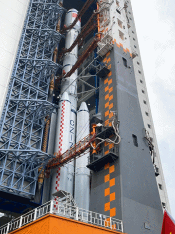 ▲ 活动发射平台承载着长七A火箭驶向发射区