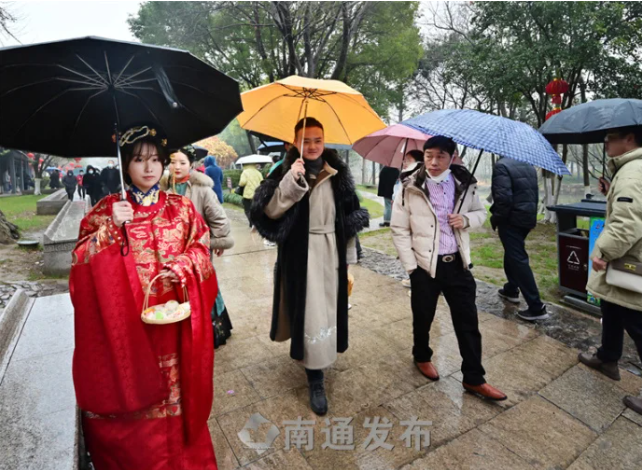 寅虎辞旧岁,玉兔迎新春。1月22日(正月初一),南通到处洋溢着过年的喜庆气氛,记者在地铁一号线航运学院站、狼山景区、市文化宫、南通新华书店、城区南大街商圈、南通博物苑等多地看到,尽管当天寒雨霏霏天气阴冷,但也丝毫也阻挡不了很多市民选择到外出观光休闲的热情。市民们在通城浓浓的烟火气息中,以赏景逛街观展猜灯谜等多种形式快快乐乐过大年,欢欢喜喜贺新春。