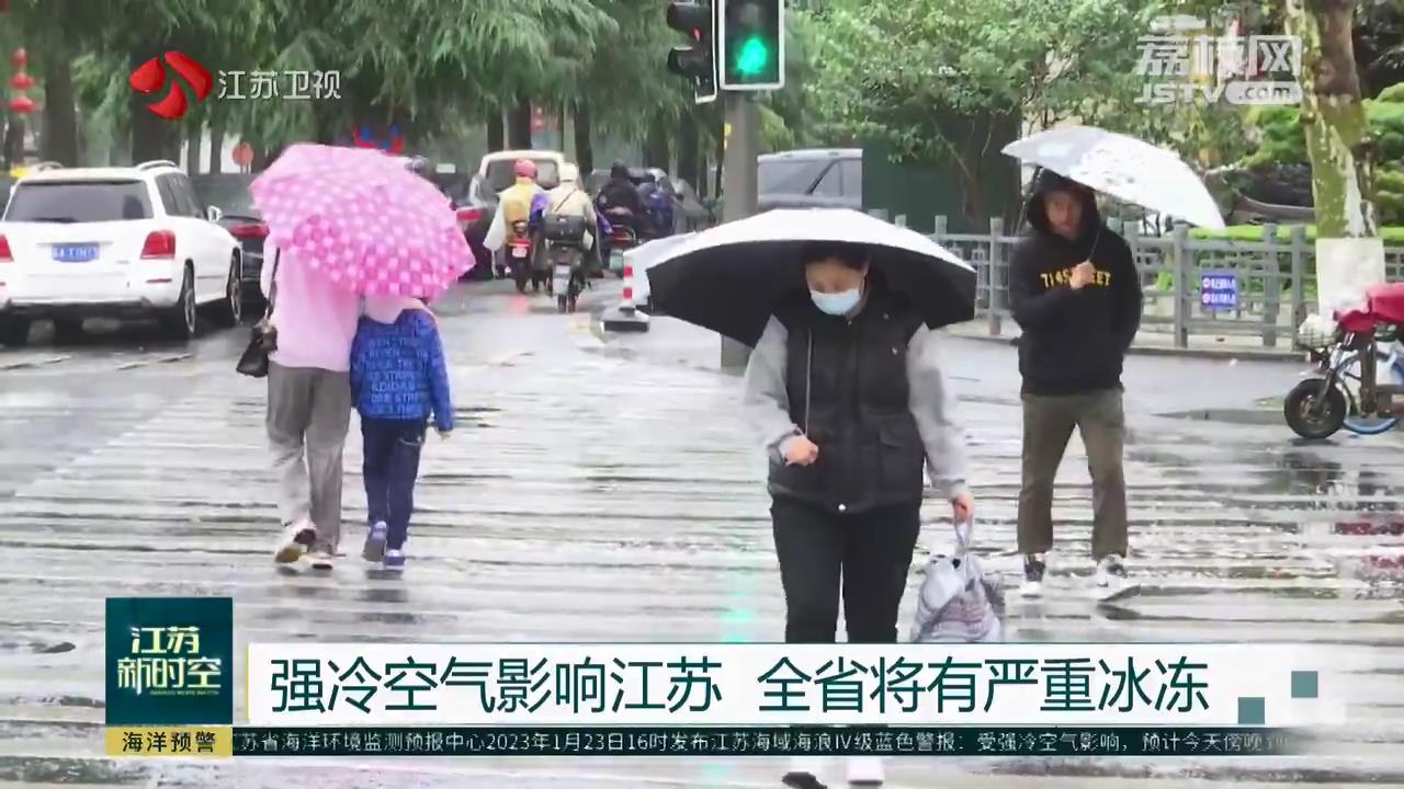 记者从江苏省气象台获悉,兔年第一波强冷空气已影响江苏。受其影响,全省气温将明显下降,淮河以南地区48小时内最低气温将下降10~12℃,局部13℃,其他地区8~9℃。过程最低气温将出现在1月25日早晨:沿淮和淮北地区-9~-10℃左右,苏南地区-6℃左右,其他地区-8℃左右,全省有严重冰冻。预计未来24小时,南京、镇江、常州、无锡、苏州、南通等地区将出现对交通有影响的道路结冰,需要注意防寒保暖、行车安全。