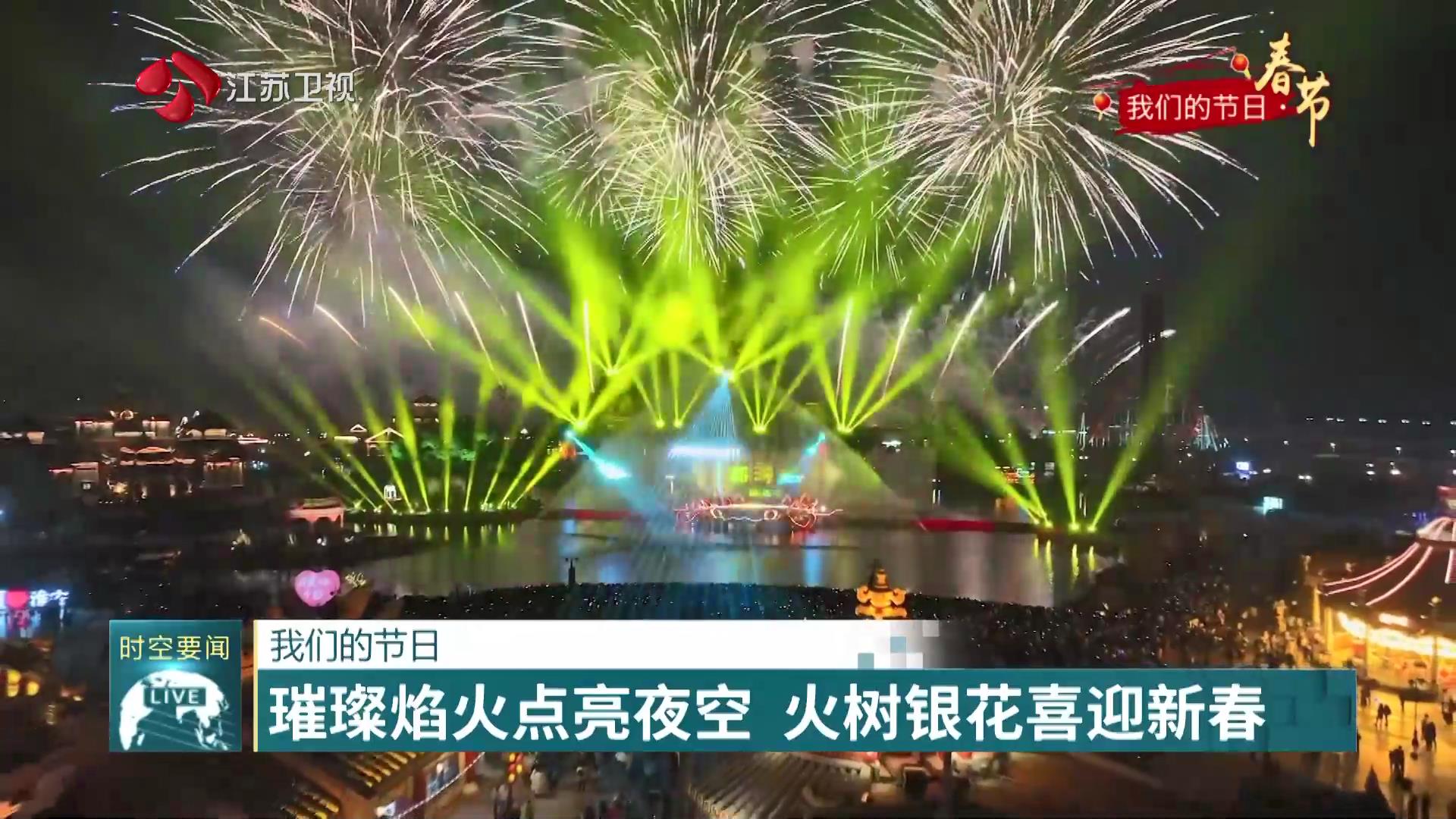 节日的夜里,在江苏各地,色彩缤纷、造型各异的烟花依次绽放,火树银花照亮每个人的笑脸。大家也在绚丽的夜空下,共同许下新年的心愿。