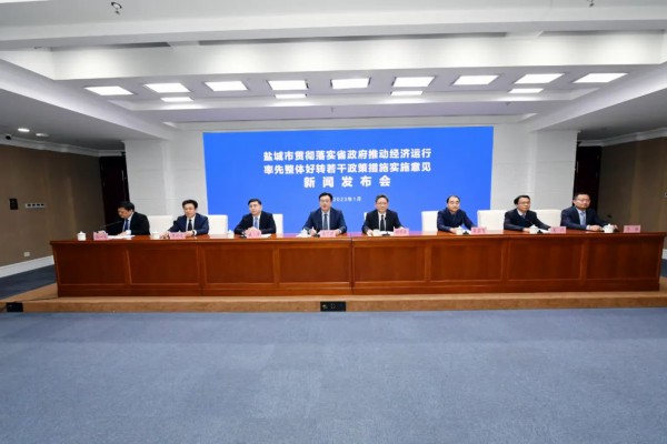 为全面贯彻落实党的二十大精神、中央经济工作会议部署和省政府关于推动经济运行率先整体好转的若干政策措施,1月30日下午,盐城市政府举行《关于贯彻落实省政府推动经济运行率先整体好转若干政策措施的实施意见》(以下简称《实施意见》)新闻发布会。市发改委主要负责同志作政策发布及解读,市工信局、市人社局、市财政局、市自然资源和规划局、市地方金融监管局、市商务局主要负责同志或分管负责同志参加发布会并答记者问。