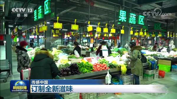 央视网消息(新闻联播):农业农村部最新发布数据显示,预计今年1月份全国蔬菜产量超5800万吨,同比增加60多万吨。时值寒冬,春节的蔬菜市场不仅供应充足而且品种丰富,而如今团圆饭的味道也有了科技支撑,让新年也过得更有滋有味。