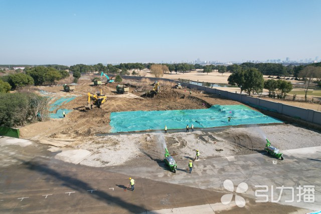 在阳澄湖星济隧道项目上,工程先期开工段各参建单位现场管理人员已全部到岗,15台套挖机、推土机等机械设备都已有序进场,正在开展先期开工段便道土方施工及临建设施内场地平整工作。