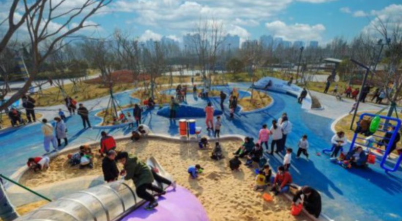“妈妈,这个手敲琴真好玩!”1月31日上午,一名小男孩正跟着母亲在樱飞园内的儿童乐园游玩,户外乐器、滑梯、沙地都让他感到无比有趣。