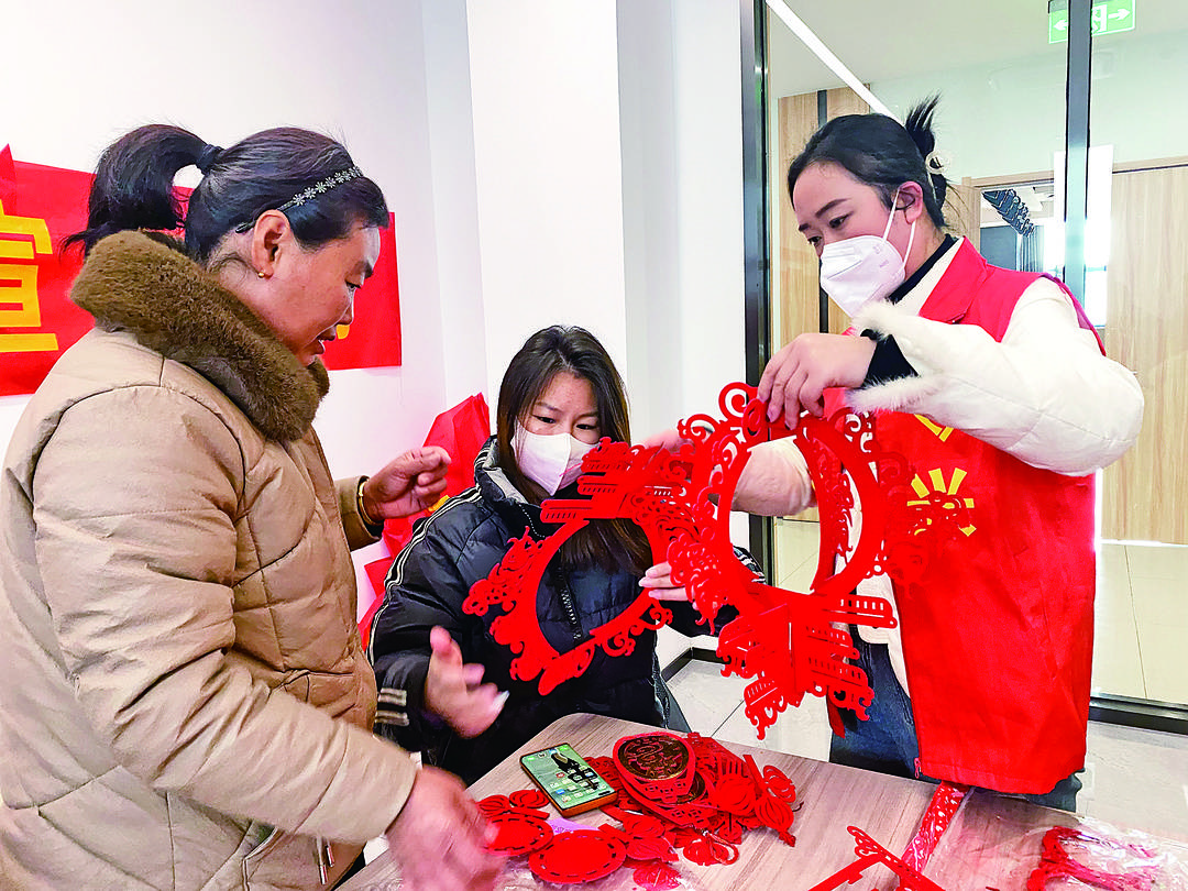 党员志愿者们制作民俗灯笼。