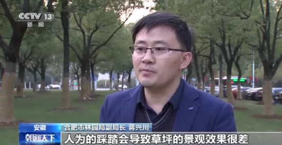 合肥市林园局副局长 蒋兴川:人为的踩踏会导致草坪的景观效果很差,黄土裸露,这样我们后期的建设和管护成本会增加。我们通过分区域管理管控,不仅减少了经济的开支,分批分次地给老百姓带来很好的绿色体验。