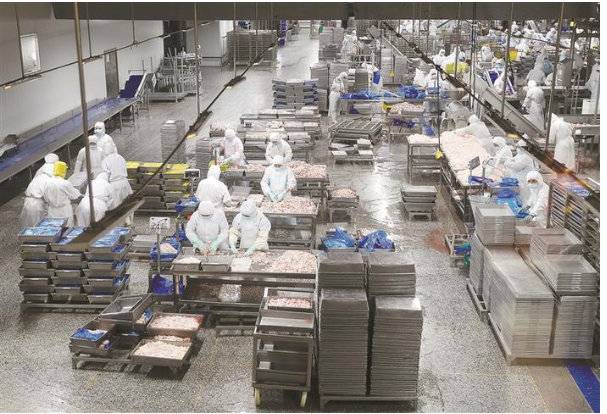 在国家级农业产业化龙头企业江苏黎明食品集团全资子公司福多美的生产车间里,工人们正在加工的复水蒜粒主要销往欧洲。