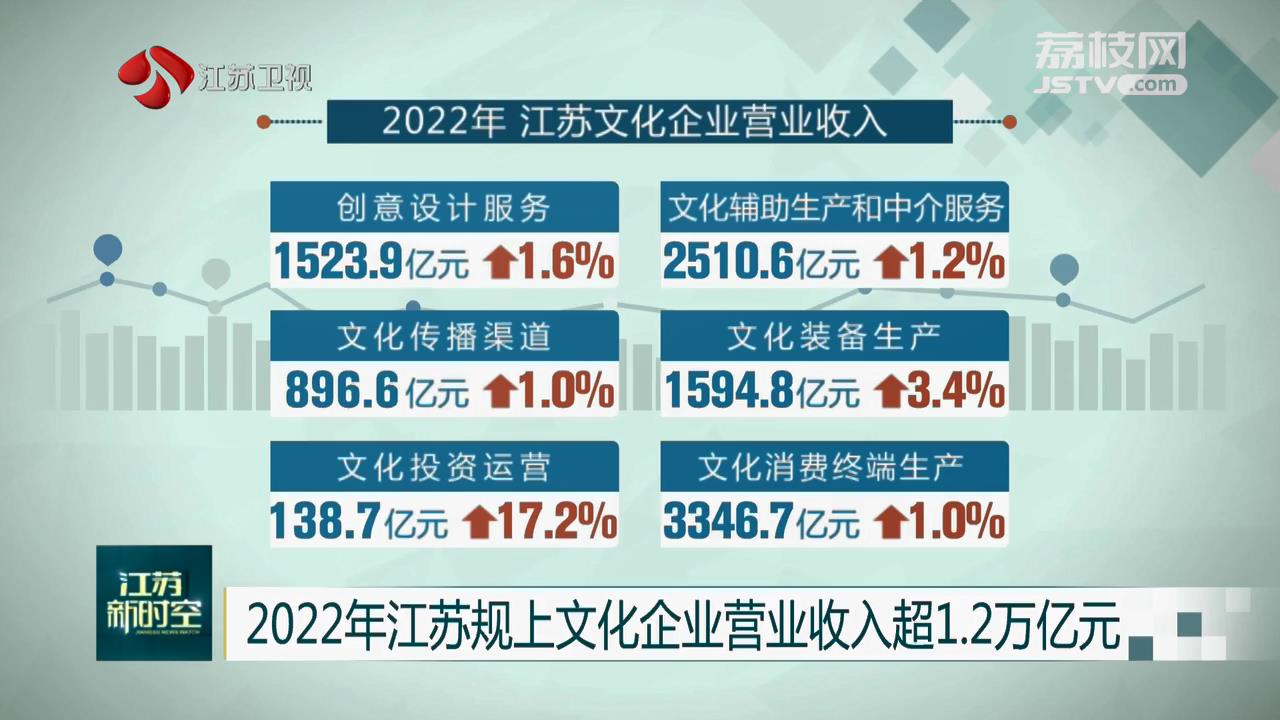 江苏省统计局近日公布数据,对全省9850家规模以上文化及相关产业企业调查显示,2022年文化企业实现营业收入12880.7亿元,比上年增长2.5%。分行业类别看,新闻信息服务营业收入689.7亿元、内容创作生产营业收入2031.8亿元,比上年分别增长8.5%和5.4%;创意设计服务、文化传播渠道、文化投资运营、文化装备生产、文化消费终端生产等行业营业收入比上年均有所增长;分产业类型看,文化制造业、文化批发和零售业、文化服务业营业收入分别为6468.2亿元、2344.2亿元、4068.3亿元。