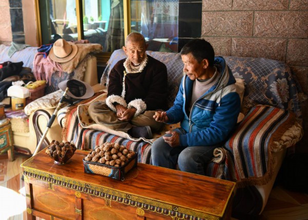 新华社拉萨2月17日电(记者格桑边觉、晋美多吉)55岁的多琼个子不高,面露慈祥,坐在一棵有着37年“树龄”的核桃树下。每到天气转暖时,他都爱坐到这里晒太阳。