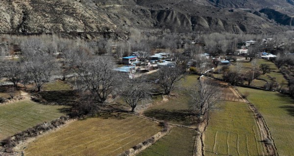 核桃树环抱的山南市加查县拉岗村(2月1日摄 无人机照片)。新华社记者晋美多吉 摄