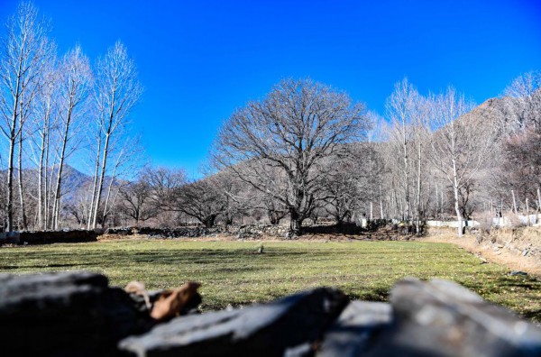 山南市加查县拉岗村到处可见的核桃树(2月1日摄)。新华社记者格桑边觉 摄