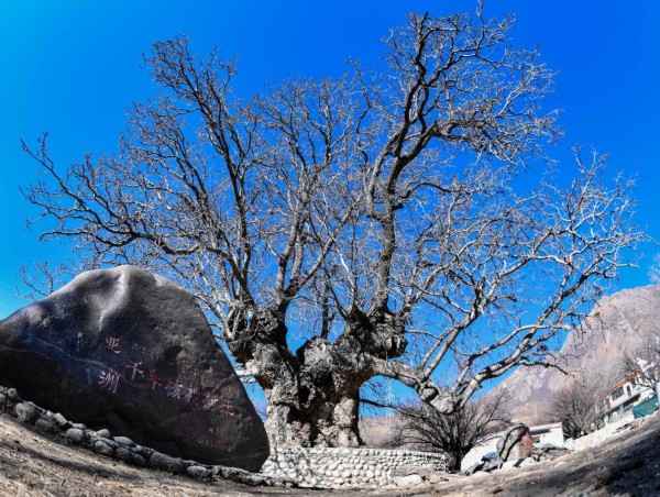 山南市加查县拉岗村的千年核桃树(2月1日摄)。新华社记者晋美多吉 摄