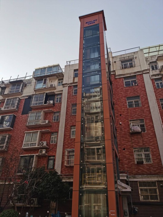 施工单位江苏东达电梯有限公司负责人李先远介绍说,这部电梯采用“整体装配式”的施工方式,具有施工周期短,不影响业主正常生活,质量优等特点,井道整体为钢结构,外部为更耐腐蚀的铝锰系合金三系铝单板,每层连廊铺设地砖、铝扣板集成吊顶、断桥铝玻璃窗,不论是井道质量还是外观颜值都是很高的。