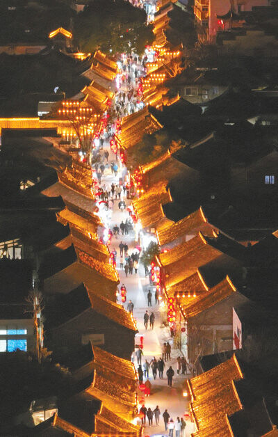 2月21日,夜幕降临,江苏省扬州市东关街亮起彩灯,古色古香的建筑与流光溢彩的灯光交相辉映,构成一幅美丽的夜景图。近年来,江苏省扬州市不断探索消费新业态、新模式,通过举办购物节、灯会等活动,打造夜经济品牌,激发消费新活力。