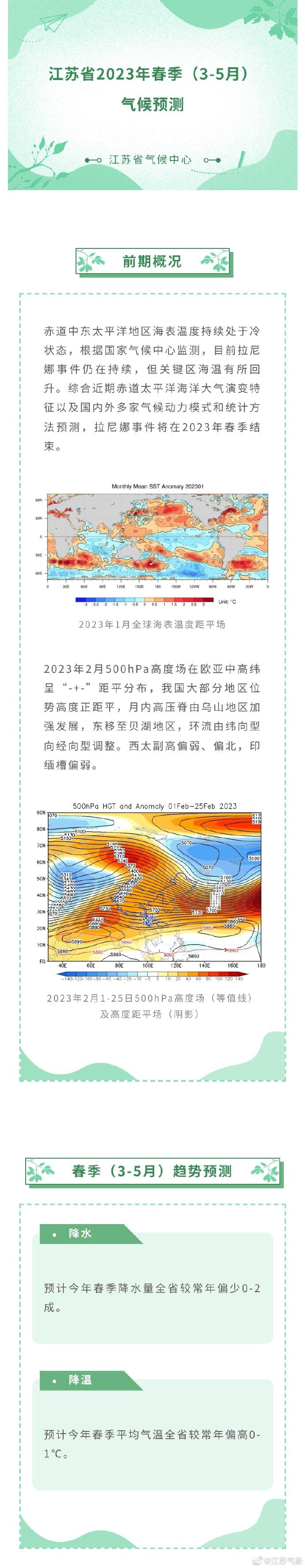 春暖花开,暖意渐至。预计今年春季降水量全省较常年偏少0-2成。预计今年春季平均气温全省较常年偏高0-1℃。具体信息戳图了解↓