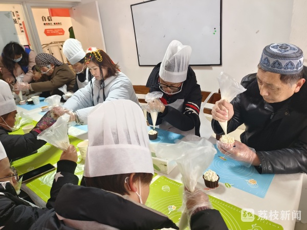 此次活动分为甜点烘焙、美食品尝、游戏互动三个环节。活动现场,特邀请甜品师傅进行甜品烘焙现场教学,打蛋、调黄油,步骤娴熟,大家将烘好的蛋糕上做出各式各样的奶油形状,你一言我一语,欢聚一堂,做甜点、品美食、玩游戏、唠家常、共叙民族团结情。